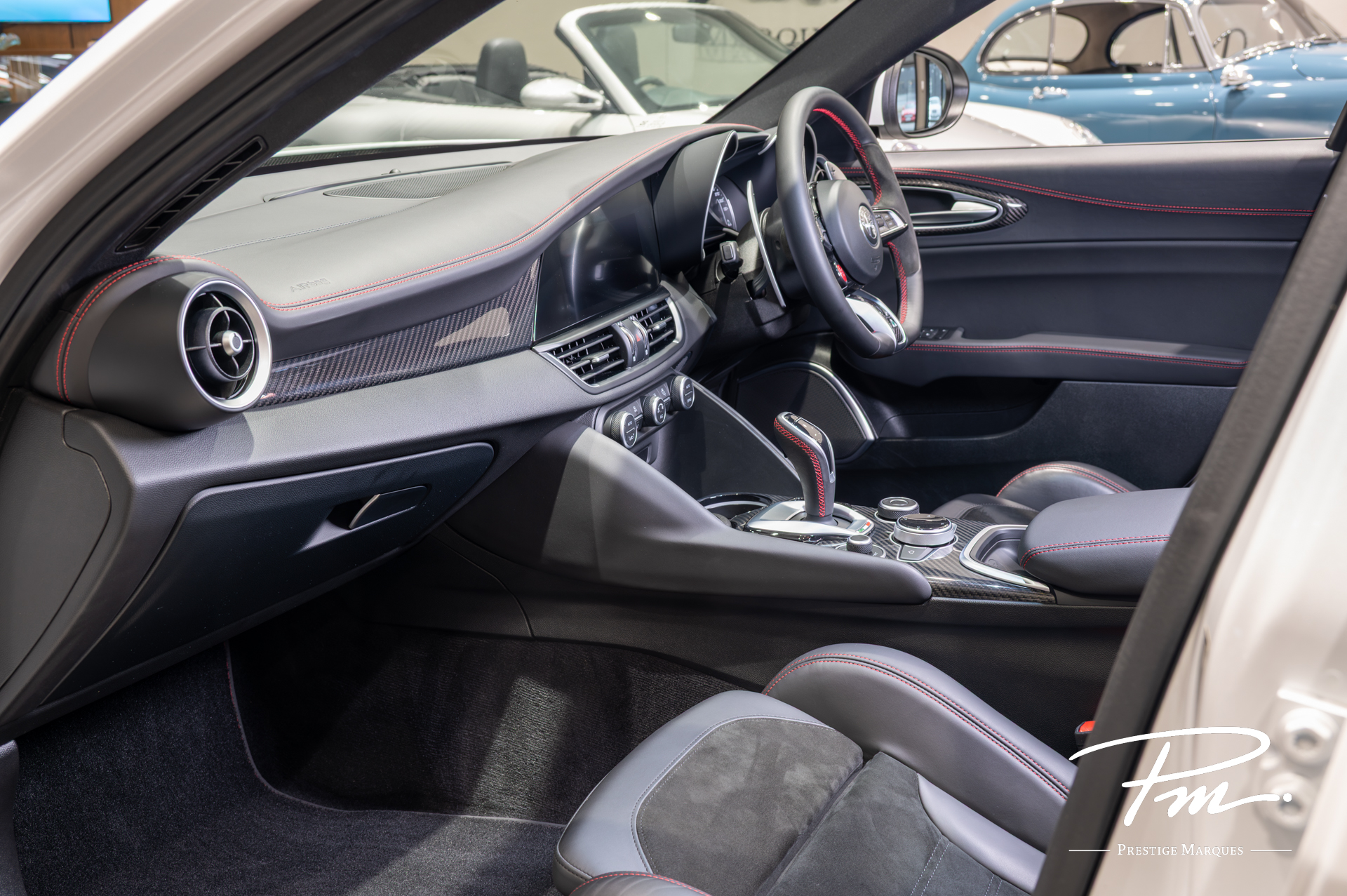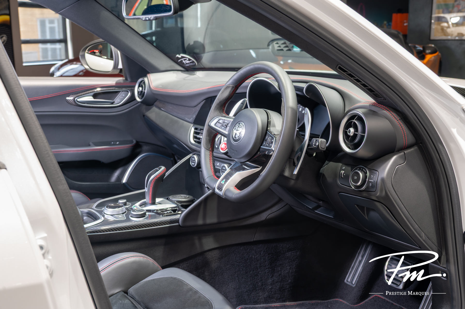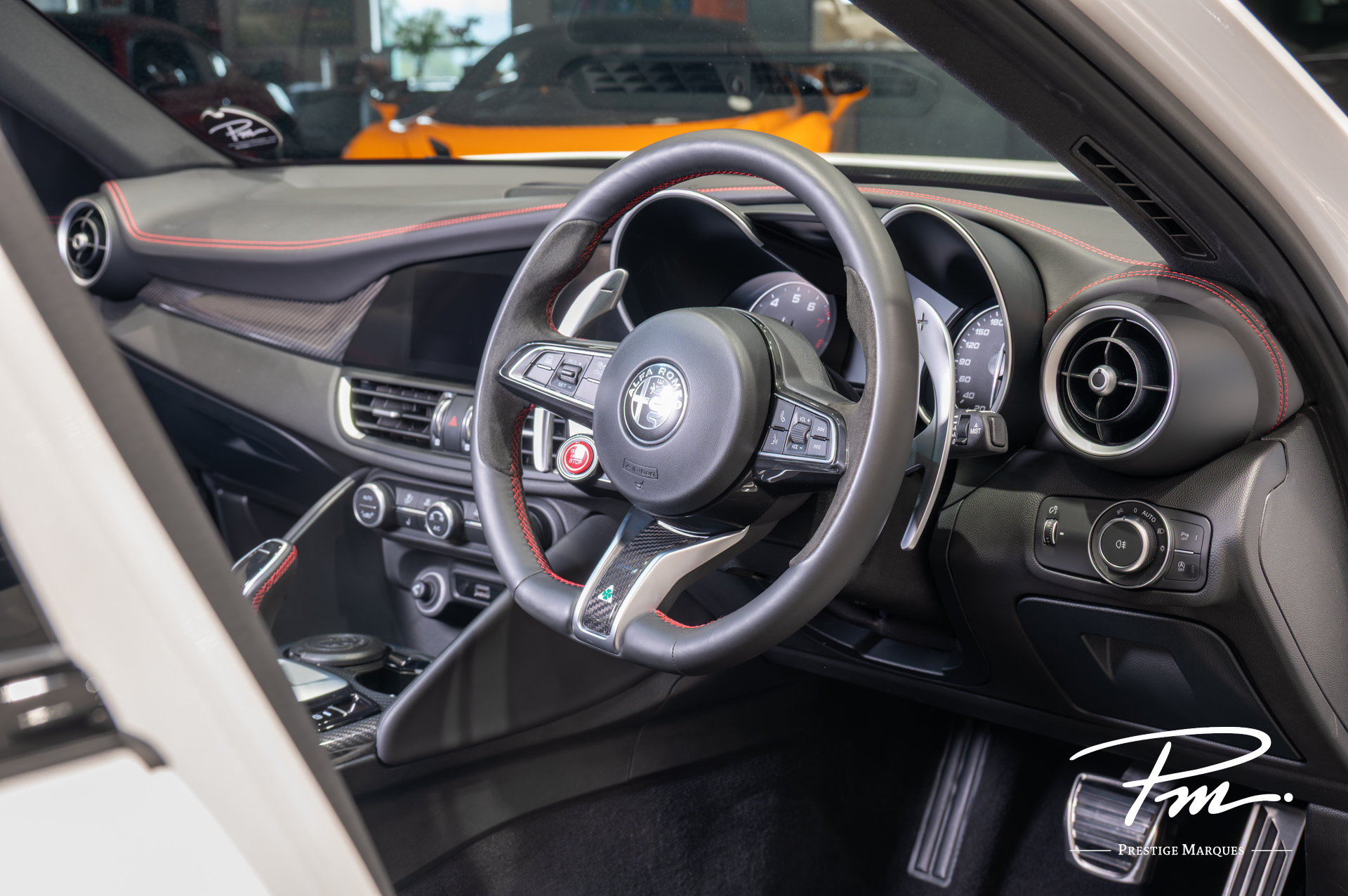 Inside, the cabin is centred around the driver, featuring deeply bolstered sport seats, a flat-bottom steering wheel with integrated start button, and a clean, modern interface. Premium materials and thoughtful ergonomics ensure that comfort and usability are never compromised.