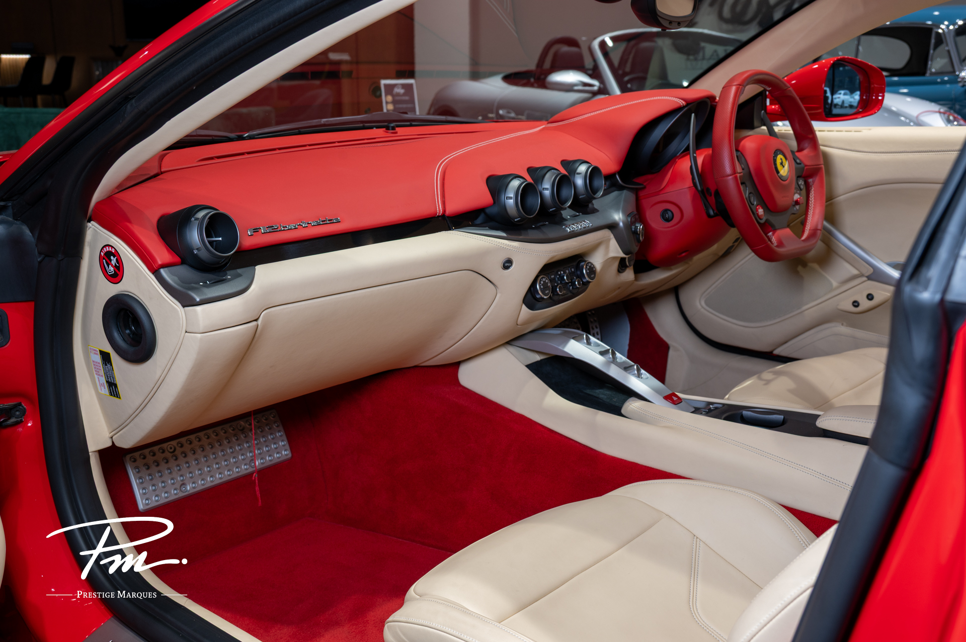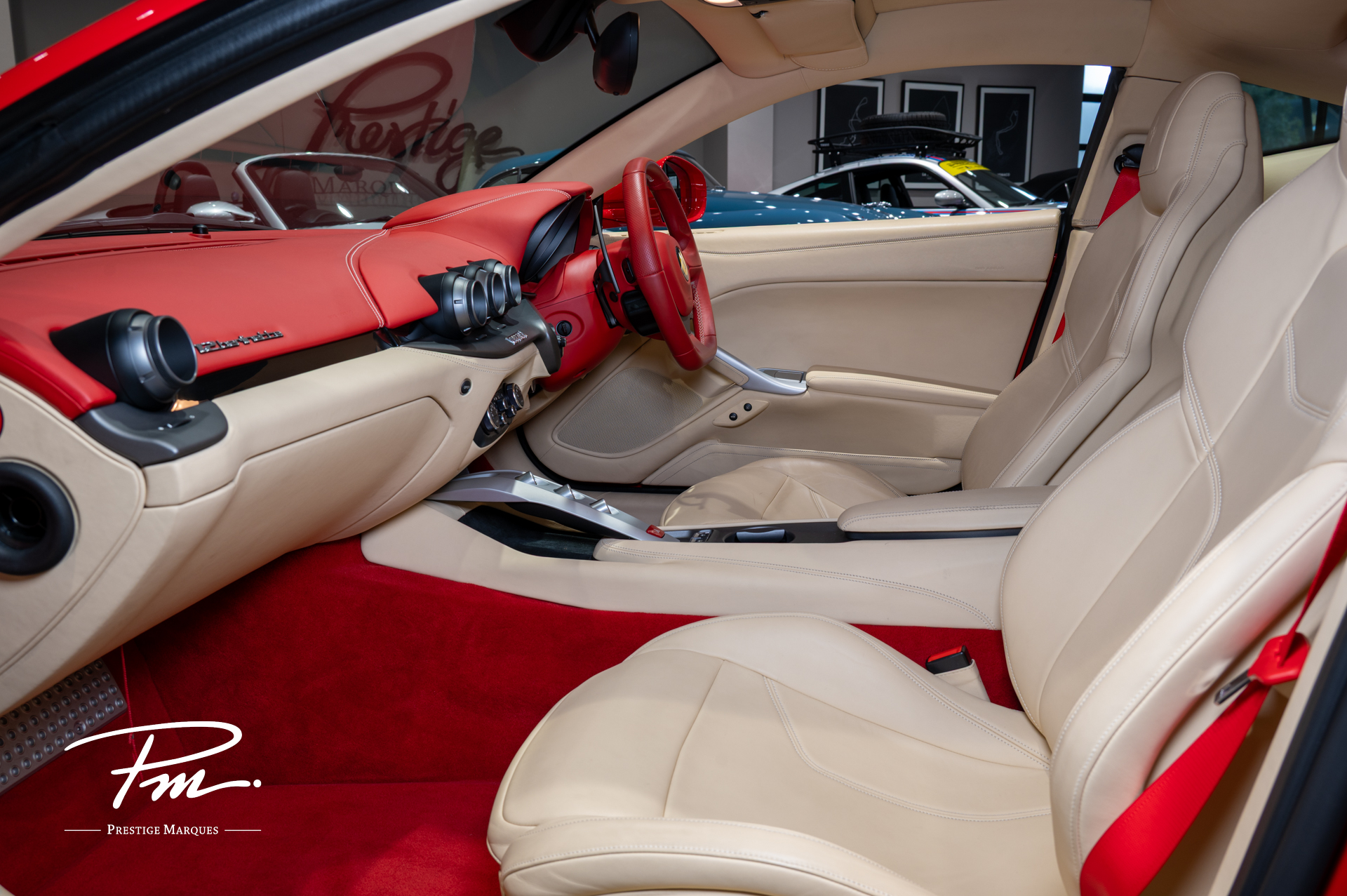 Cream leather interior elegant contrast with Rosso dashboard