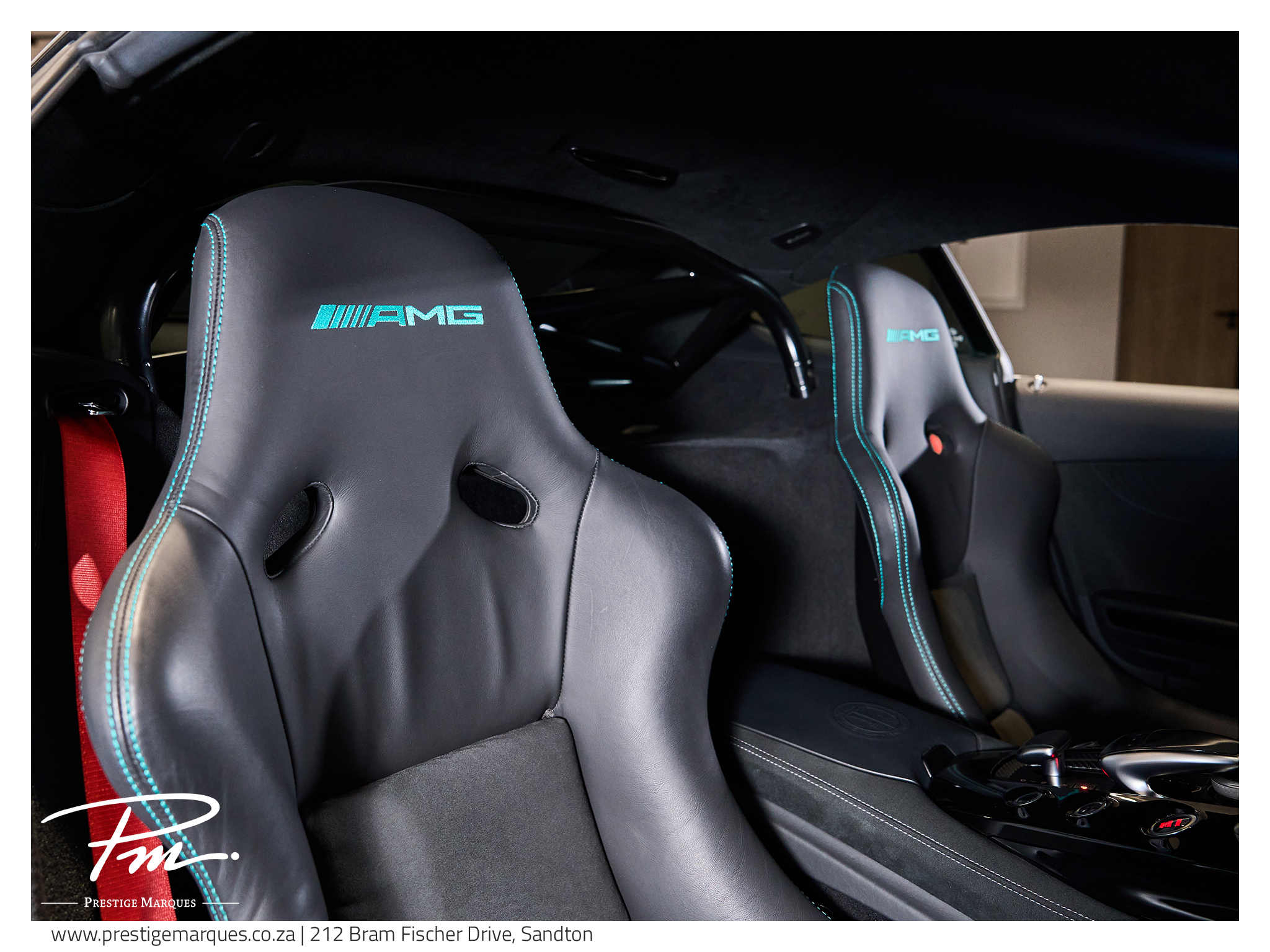 AMG sports bucket seats with red seat belts