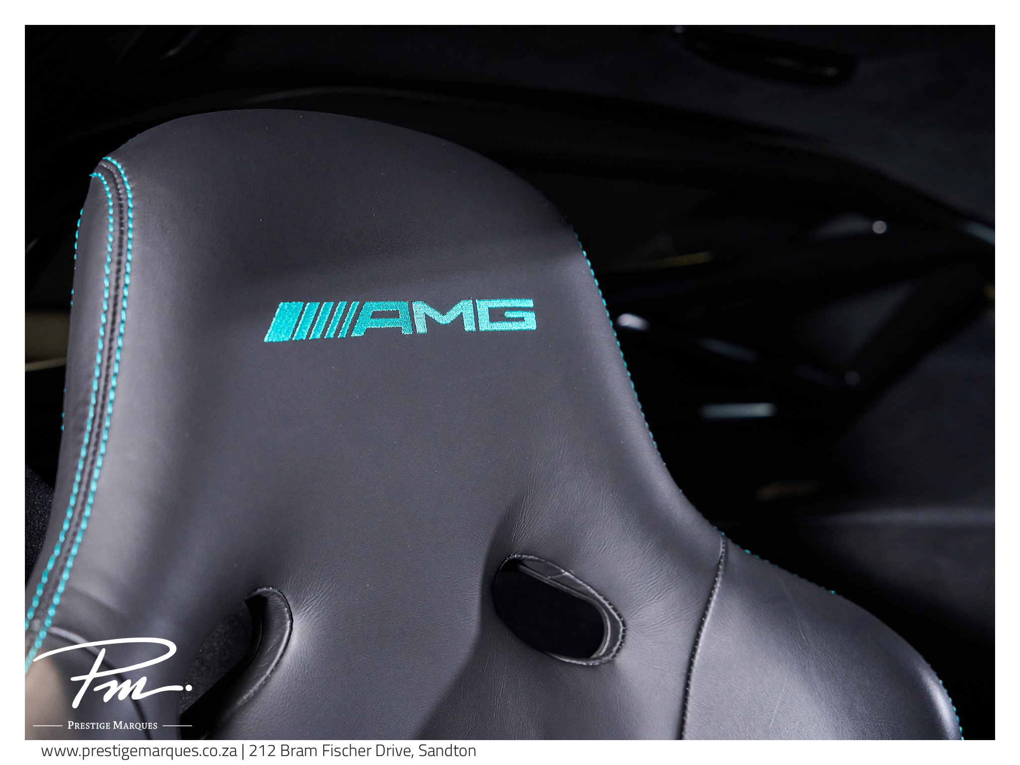 Inside, the cockpit blends luxury and performance with AMG sports bucket seats, red seat belts, and AMG matt carbon-fibre interior trim, creating a purposeful driver-focused environment.