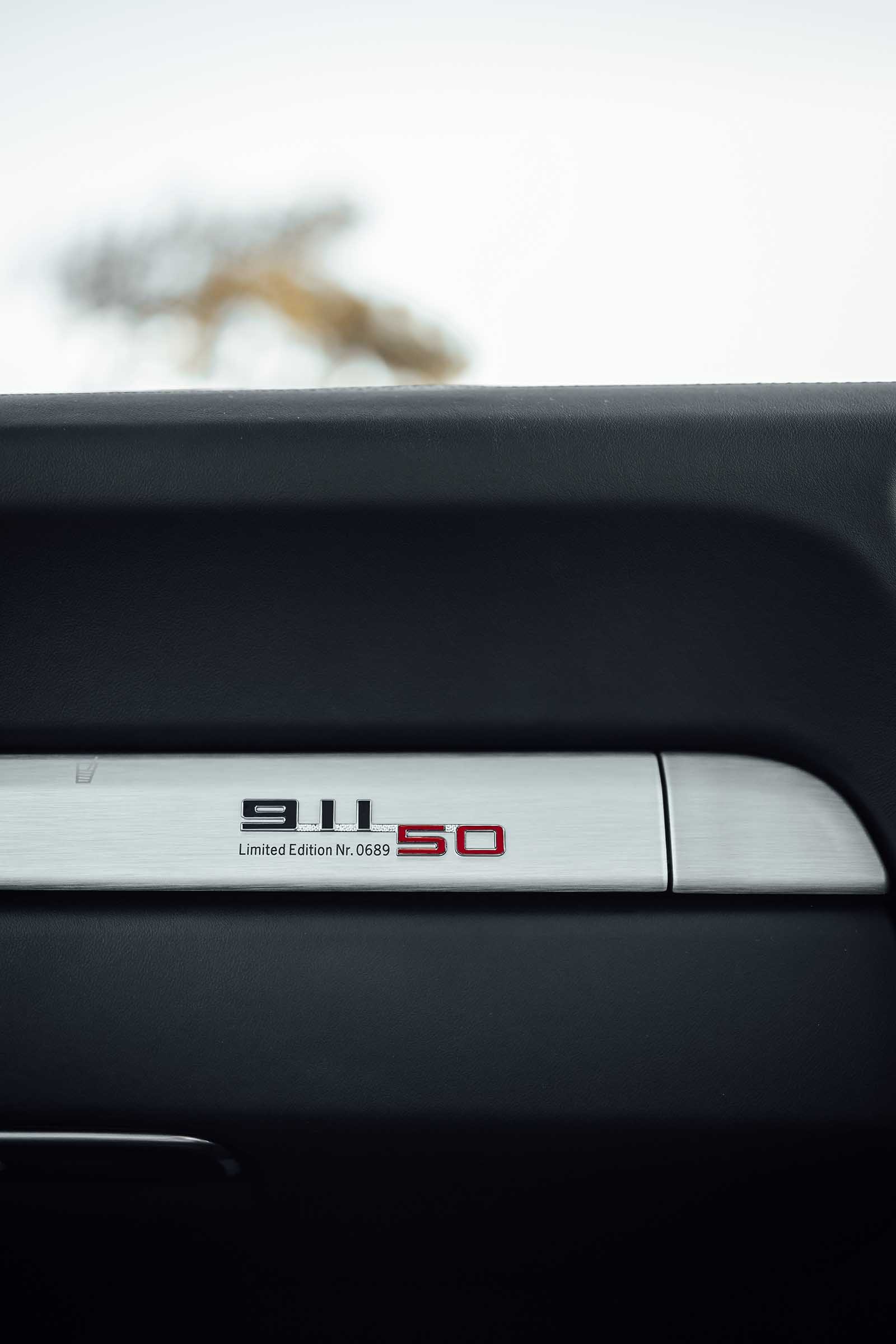 The Porsche 911 50th anniversary edition was a limited run of only 1963 units worldwide to celebrate the 50th anniversary of the 911’s unveiling in 1963. Each unit was available in one of three colors, Geyser grey, Graphite grey and Basalt Black. The 50th anniversary also came with the wider body from the Carrera 4, 20” Fuchs inspired wheels, darkened headlight surrounds and chrome accents over the engine lid cover. Moving to the interior each vehicle came with a 50th anniversary plaque and the individual number of the vehicle in the limited production run. Houndstooth was also an option to set the interior apart from any other 911 in the 991 range.